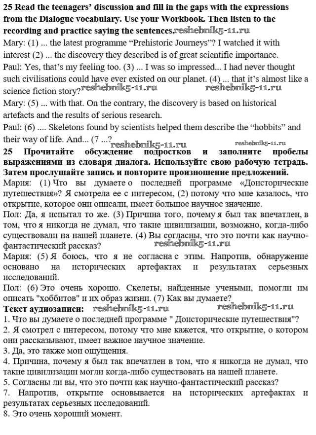 Готовая домашняя работа с ответами по Английскому языку за 10 класс Биболетова, Денисенко, Трубанева Учебник Enjoy English Аст/Астрель 2016 ФГОС - Unit 3. Civilisation and progress 25