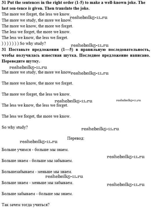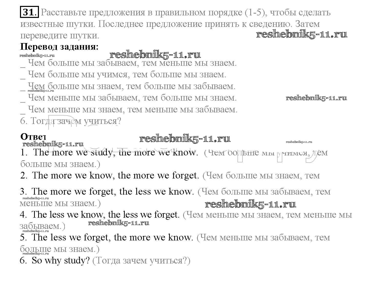 Готовая домашняя работа с ответами по Английскому языку за 10 класс Биболетова, Денисенко, Трубанева Учебник Enjoy English Аст/Астрель 2016 ФГОС - Unit 3. Civilisation and progress 31