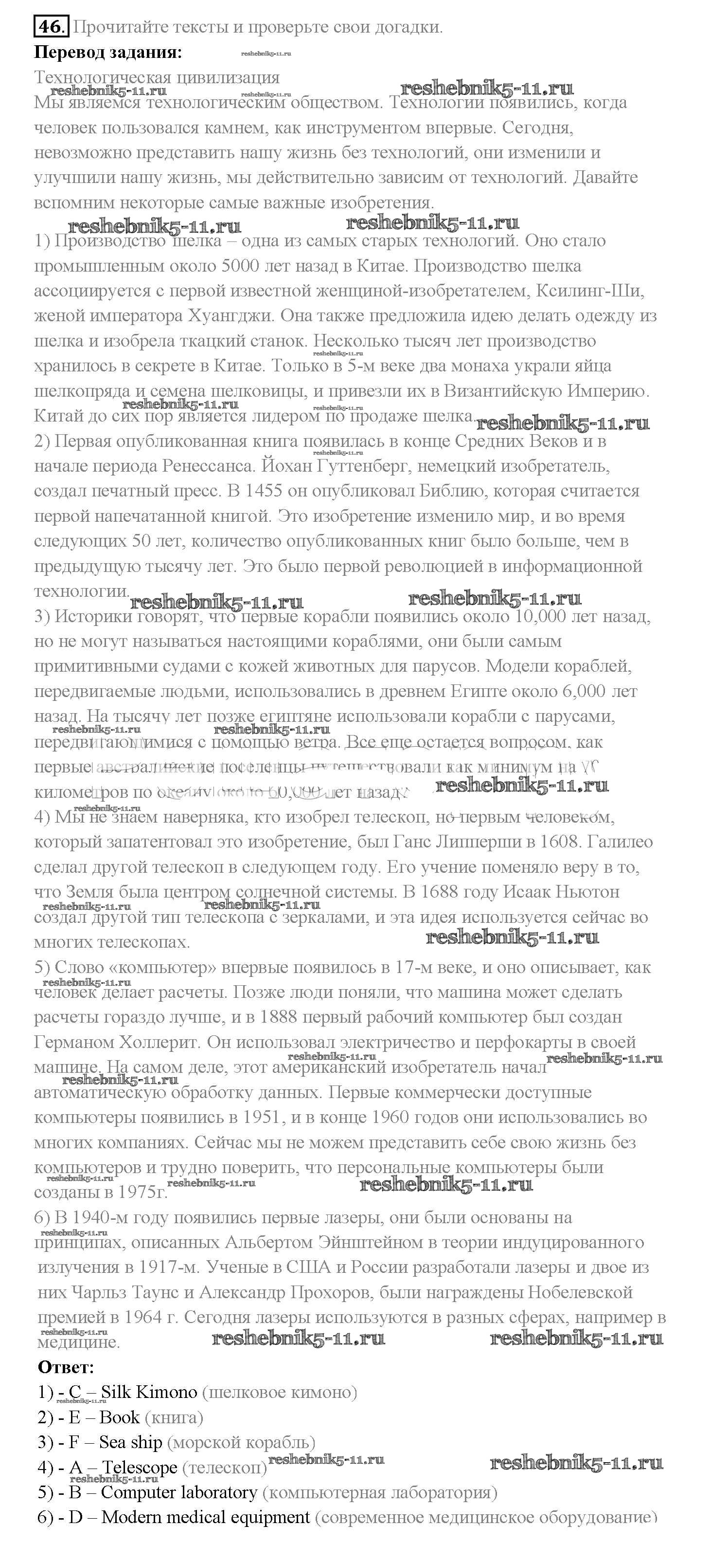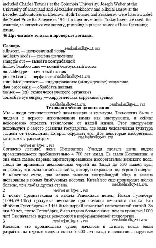 Готовая домашняя работа с ответами по Английскому языку за 10 класс Биболетова, Денисенко, Трубанева Учебник Enjoy English Аст/Астрель 2016 ФГОС - Unit 3. Civilisation and progress 46