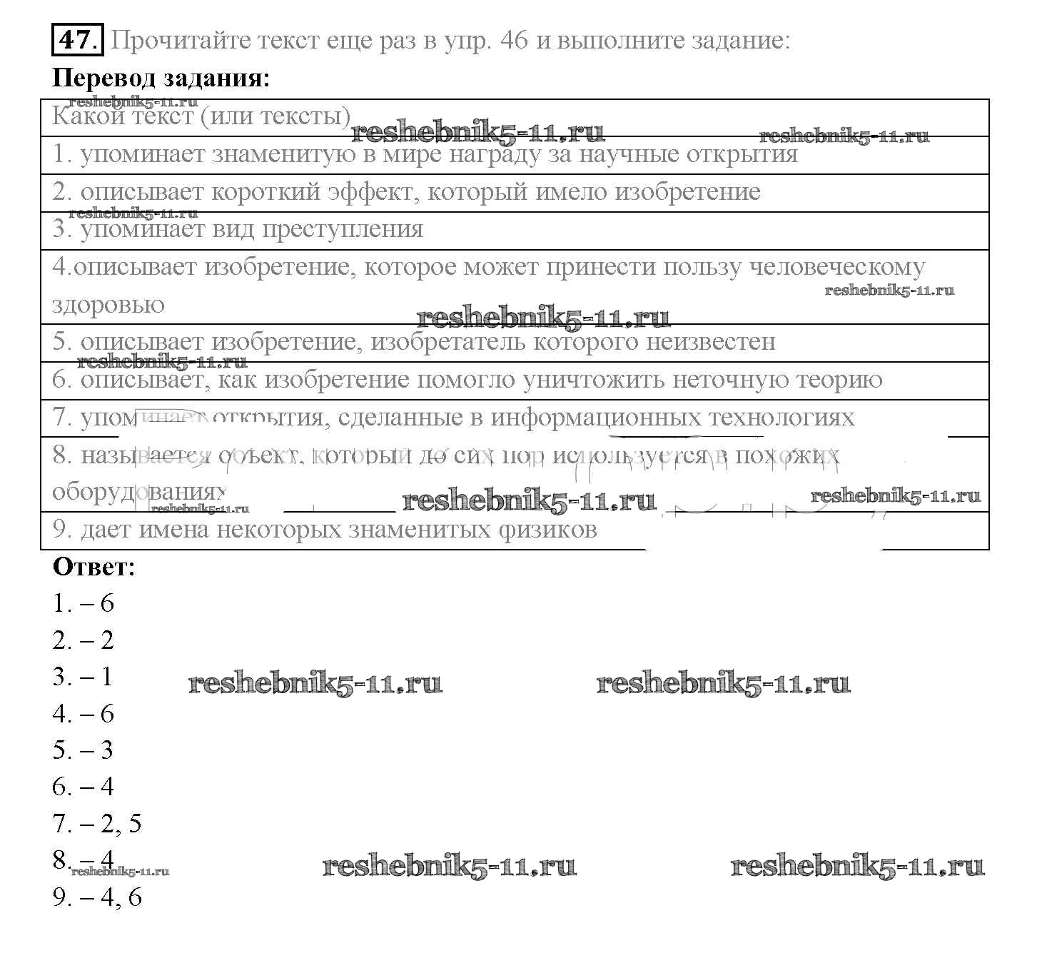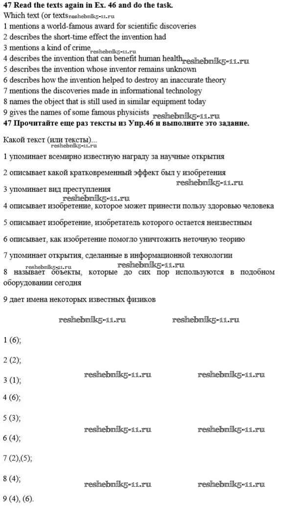 Готовая домашняя работа с ответами по Английскому языку за 10 класс Биболетова, Денисенко, Трубанева Учебник Enjoy English Аст/Астрель 2016 ФГОС - Unit 3. Civilisation and progress 47