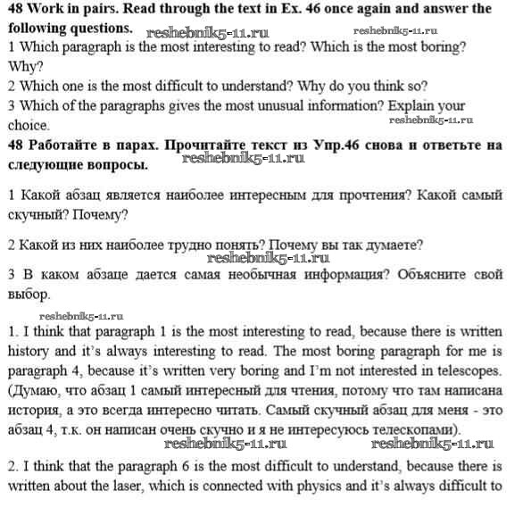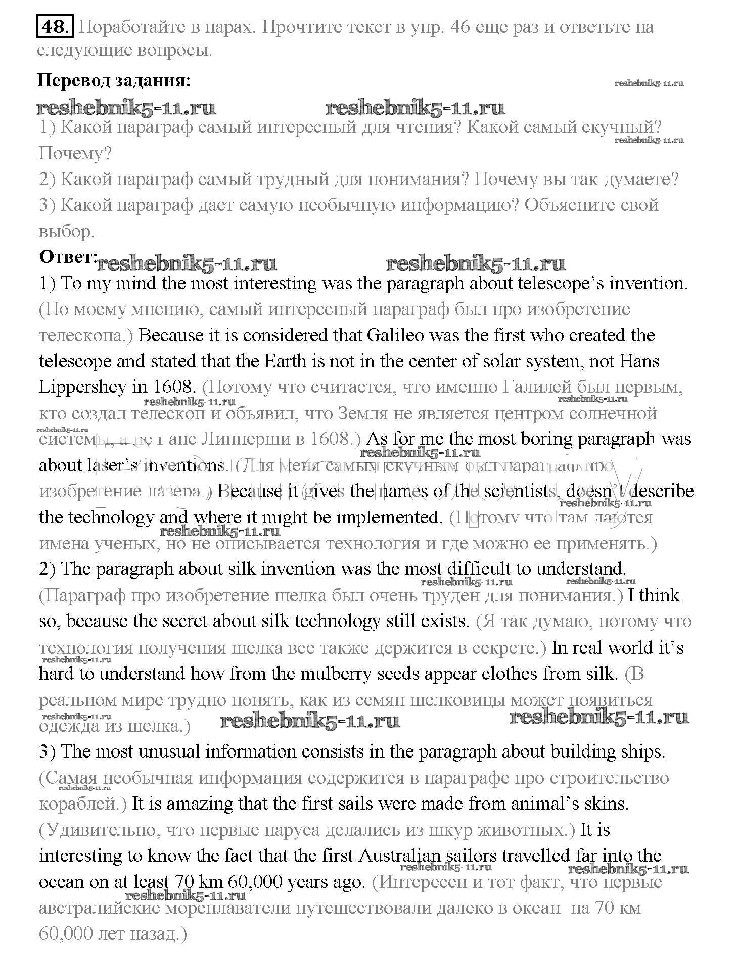 Готовая домашняя работа с ответами по Английскому языку за 10 класс Биболетова, Денисенко, Трубанева Учебник Enjoy English Аст/Астрель 2016 ФГОС - Unit 3. Civilisation and progress 48