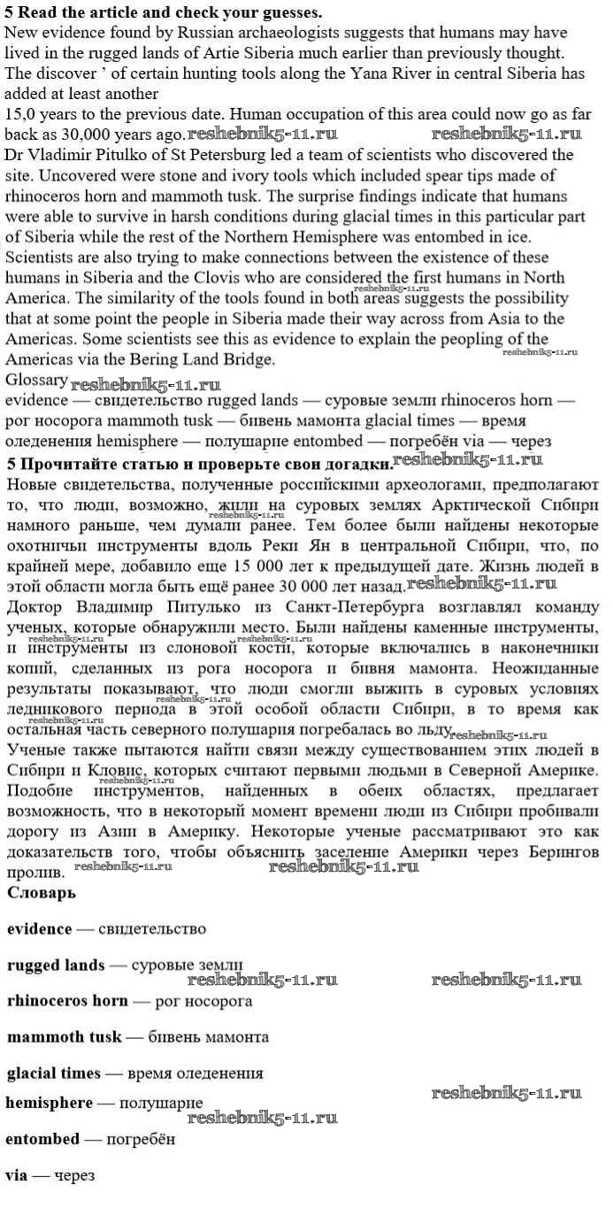 Готовая домашняя работа с ответами по Английскому языку за 10 класс Биболетова, Денисенко, Трубанева Учебник Enjoy English Аст/Астрель 2016 ФГОС - Unit 3. Civilisation and progress 5