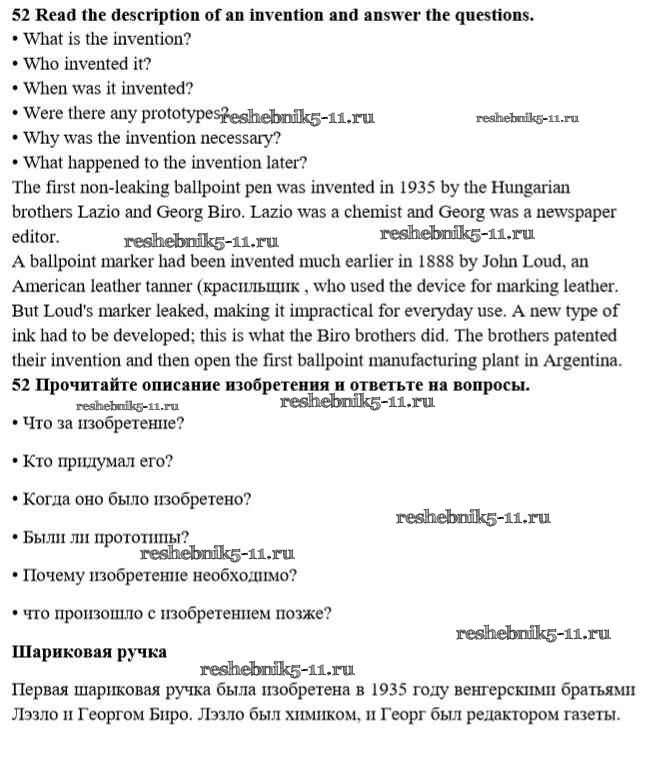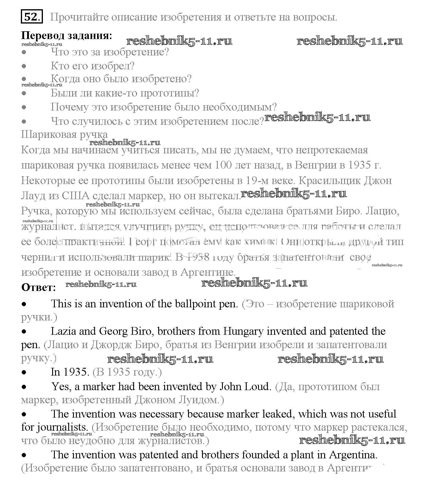 Готовая домашняя работа с ответами по Английскому языку за 10 класс Биболетова, Денисенко, Трубанева Учебник Enjoy English Аст/Астрель 2016 ФГОС - Unit 3. Civilisation and progress 52