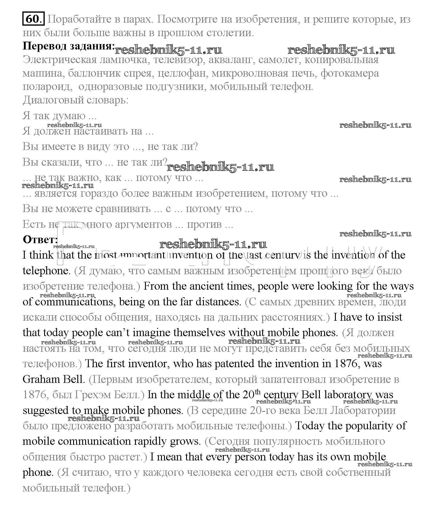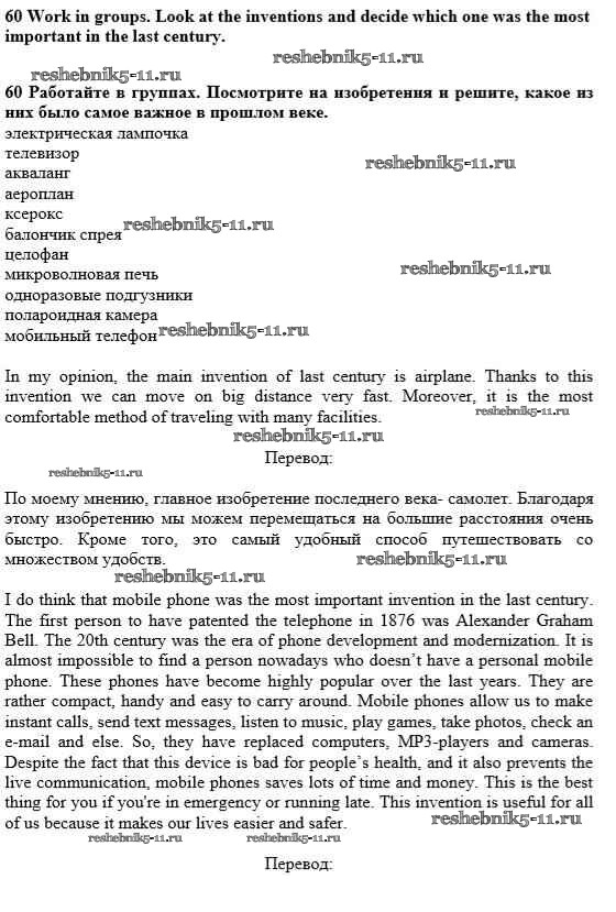 Готовая домашняя работа с ответами по Английскому языку за 10 класс Биболетова, Денисенко, Трубанева Учебник Enjoy English Аст/Астрель 2016 ФГОС - Unit 3. Civilisation and progress 60