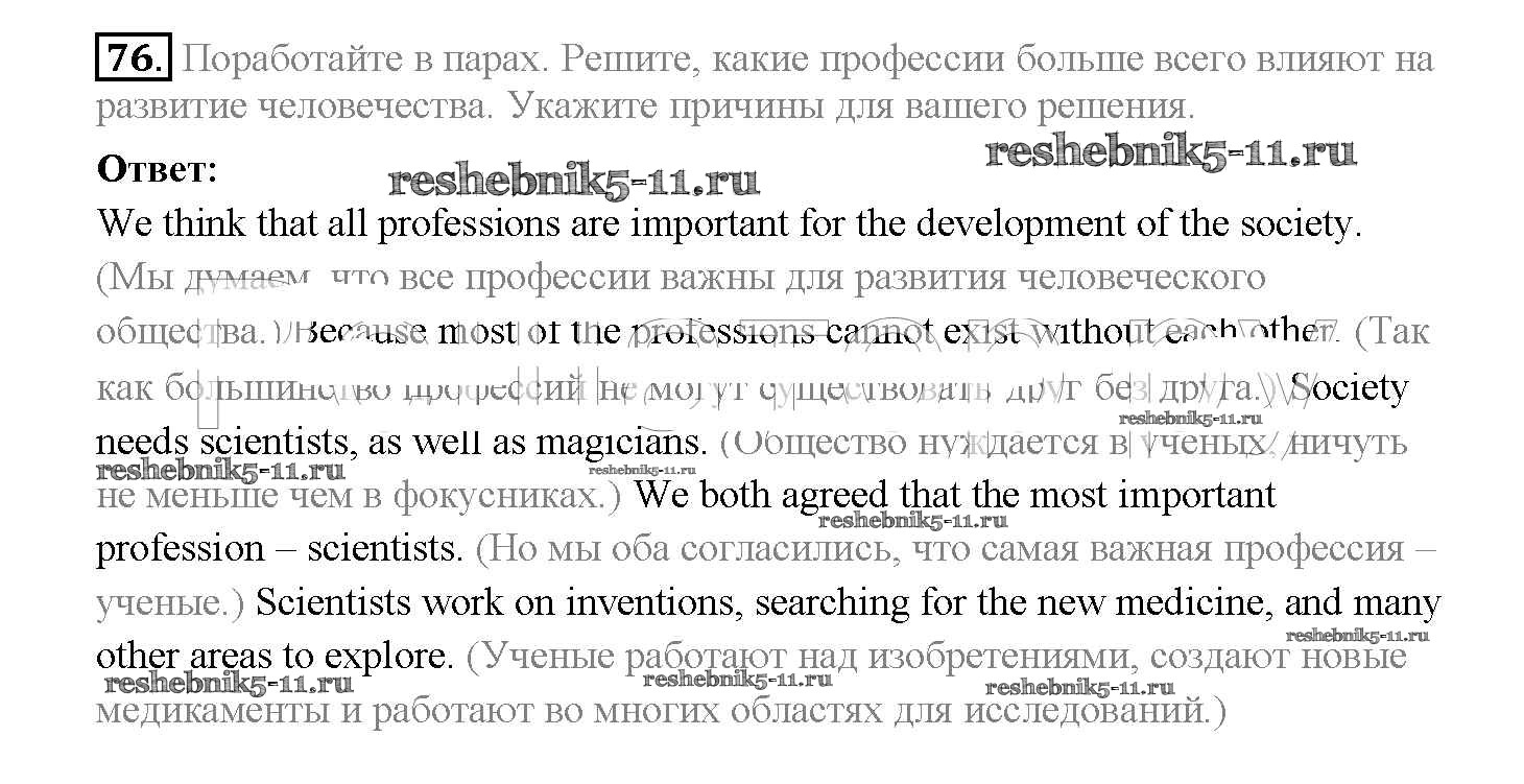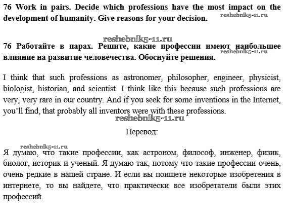 Готовая домашняя работа с ответами по Английскому языку за 10 класс Биболетова, Денисенко, Трубанева Учебник Enjoy English Аст/Астрель 2016 ФГОС - Unit 3. Civilisation and progress 76