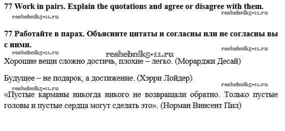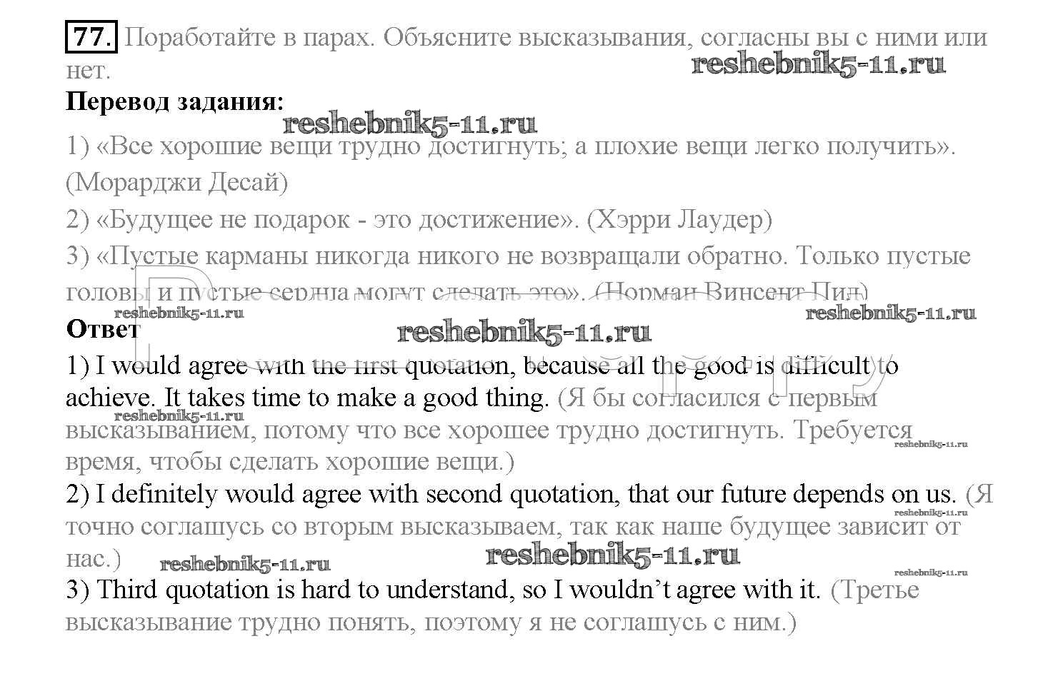 Готовая домашняя работа с ответами по Английскому языку за 10 класс Биболетова, Денисенко, Трубанева Учебник Enjoy English Аст/Астрель 2016 ФГОС - Unit 3. Civilisation and progress 77
