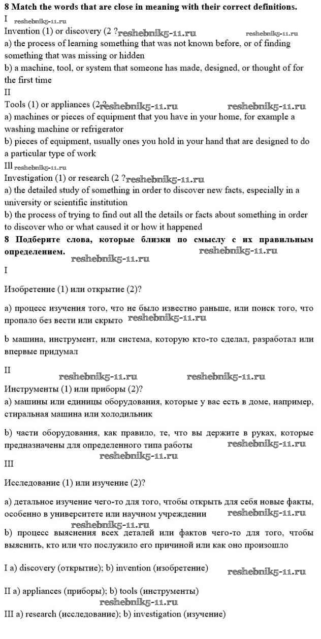 Готовая домашняя работа с ответами по Английскому языку за 10 класс Биболетова, Денисенко, Трубанева Учебник Enjoy English Аст/Астрель 2016 ФГОС - Unit 3. Civilisation and progress 8
