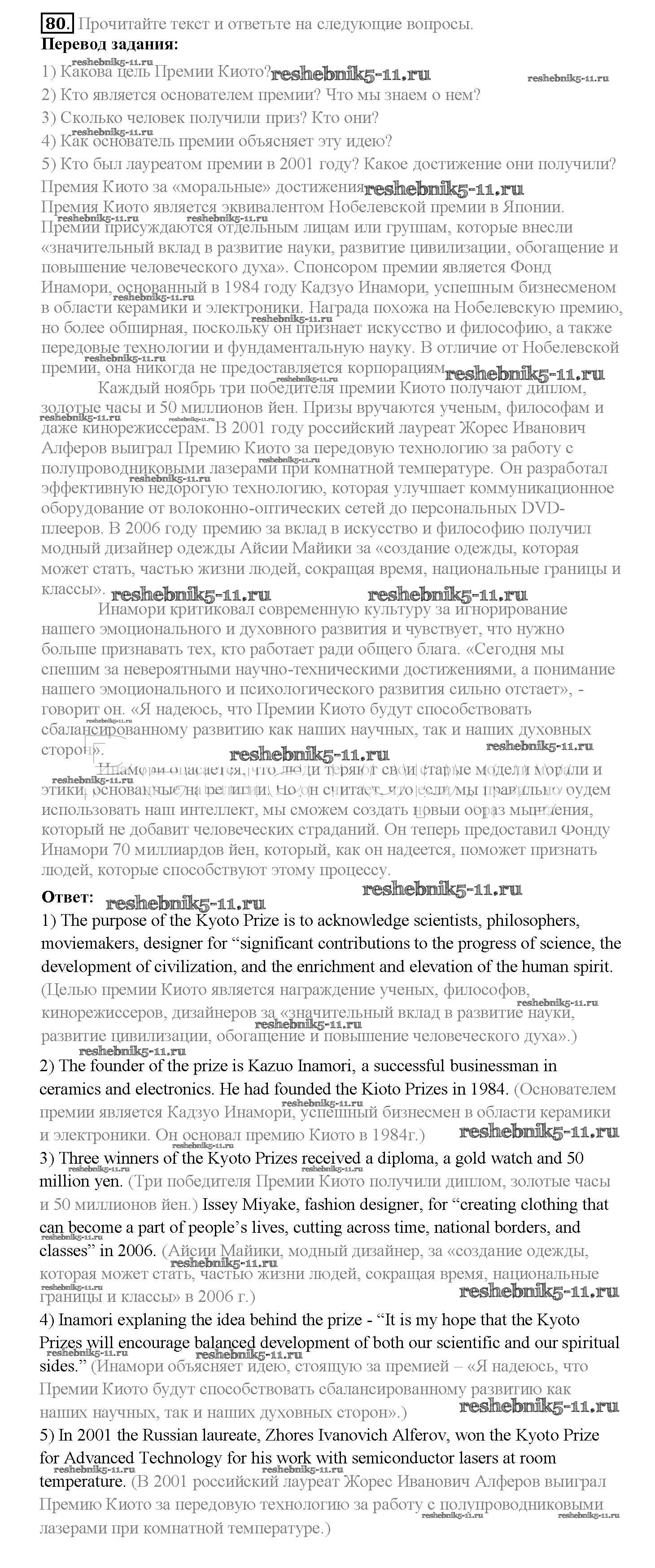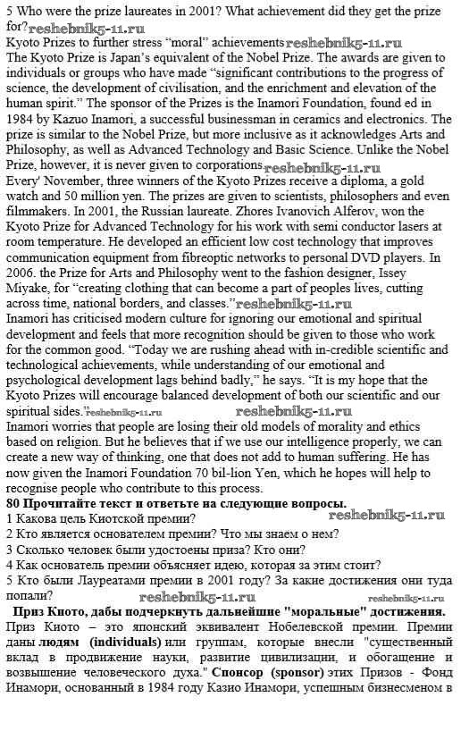 Готовая домашняя работа с ответами по Английскому языку за 10 класс Биболетова, Денисенко, Трубанева Учебник Enjoy English Аст/Астрель 2016 ФГОС - Unit 3. Civilisation and progress 80