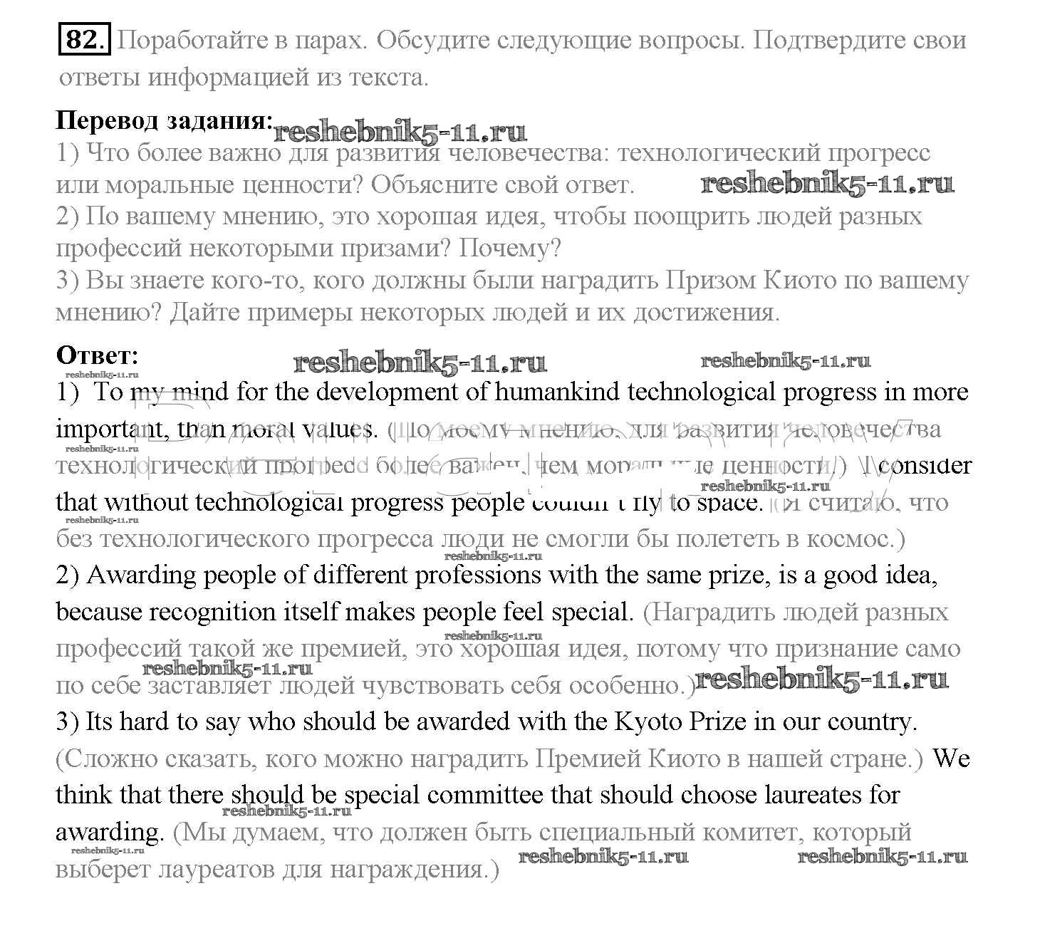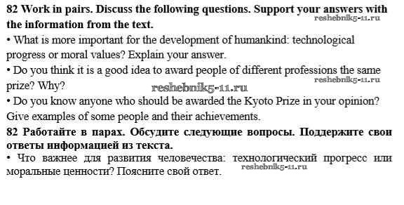 Готовая домашняя работа с ответами по Английскому языку за 10 класс Биболетова, Денисенко, Трубанева Учебник Enjoy English Аст/Астрель 2016 ФГОС - Unit 3. Civilisation and progress 82