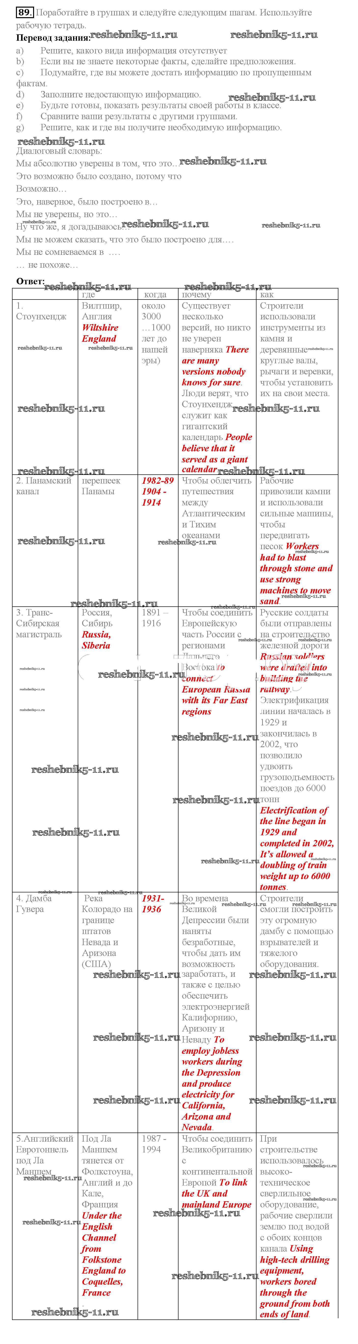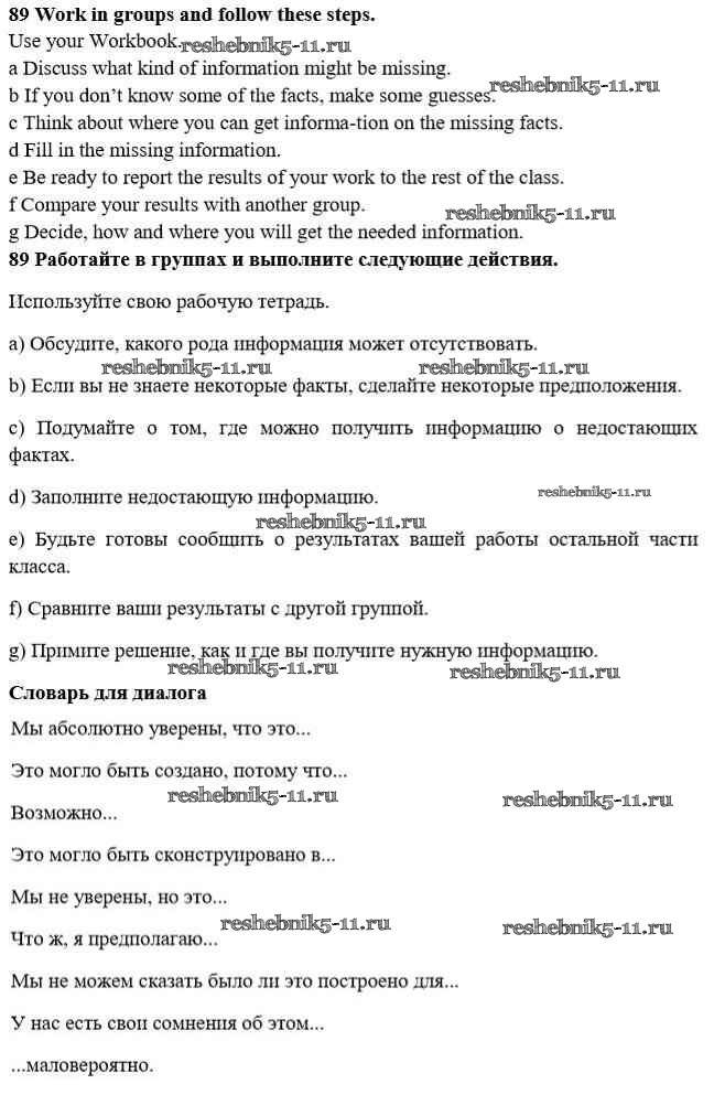 Готовая домашняя работа с ответами по Английскому языку за 10 класс Биболетова, Денисенко, Трубанева Учебник Enjoy English Аст/Астрель 2016 ФГОС - Unit 3. Civilisation and progress 89