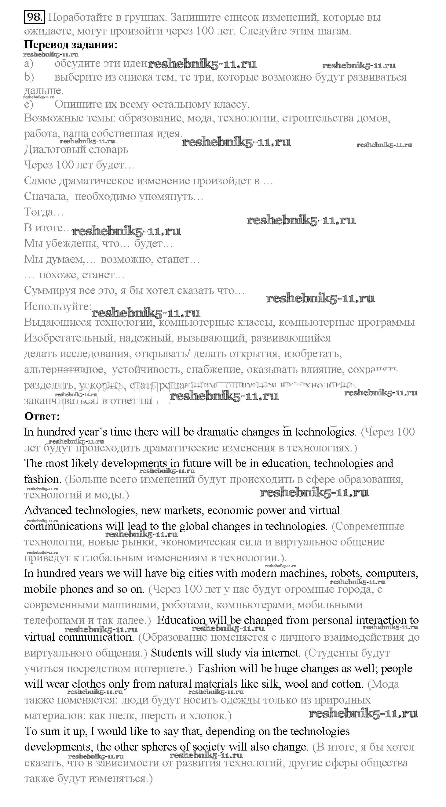 Готовая домашняя работа с ответами по Английскому языку за 10 класс Биболетова, Денисенко, Трубанева Учебник Enjoy English Аст/Астрель 2016 ФГОС - Unit 3. Civilisation and progress 98