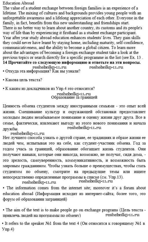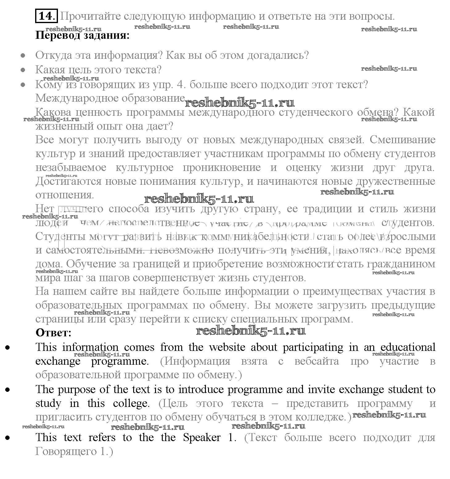 Готовая домашняя работа с ответами по Английскому языку за 10 класс Биболетова, Денисенко, Трубанева Учебник Enjoy English Аст/Астрель 2016 ФГОС - Unit 4. The world of opportunities 14