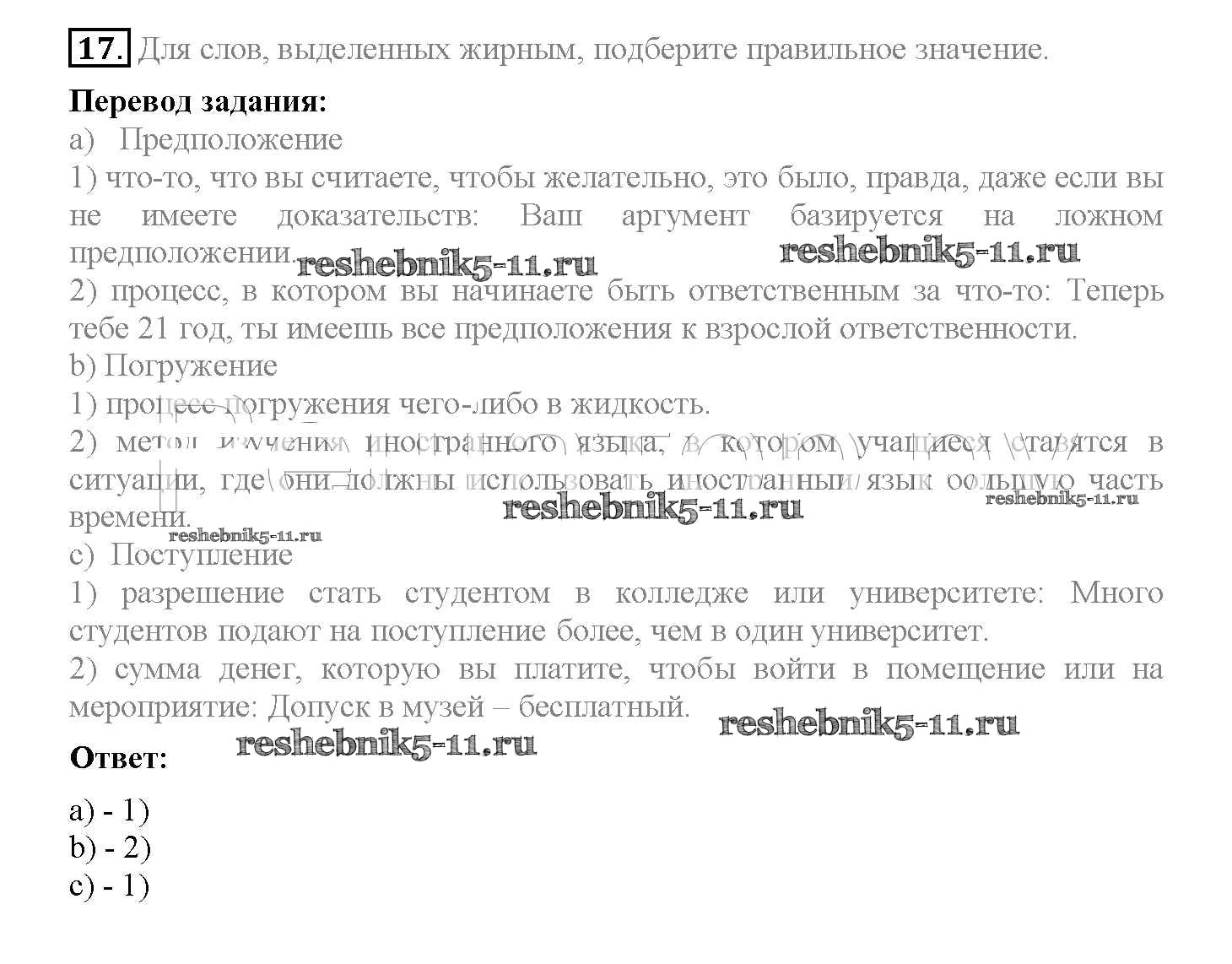 Готовая домашняя работа с ответами по Английскому языку за 10 класс Биболетова, Денисенко, Трубанева Учебник Enjoy English Аст/Астрель 2016 ФГОС - Unit 4. The world of opportunities 17