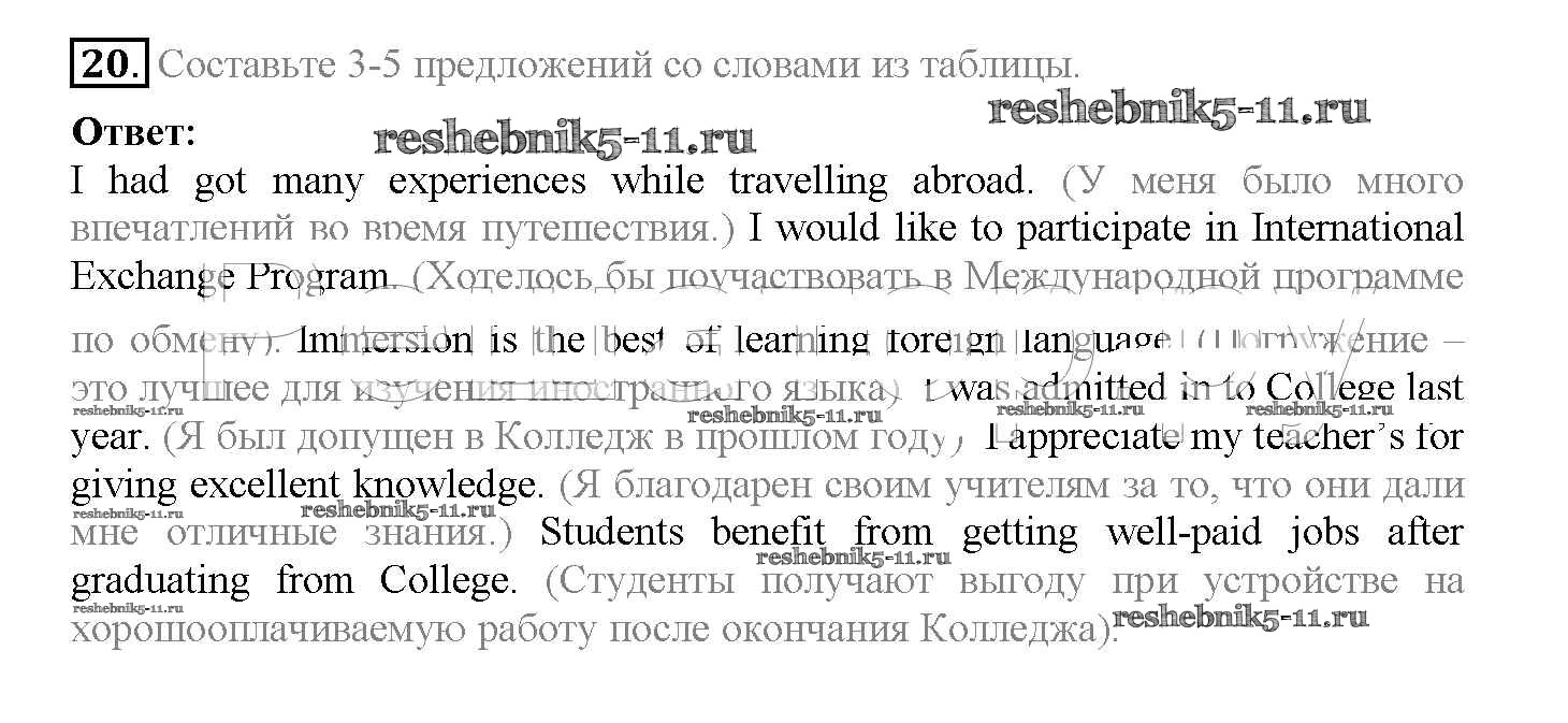 Готовая домашняя работа с ответами по Английскому языку за 10 класс Биболетова, Денисенко, Трубанева Учебник Enjoy English Аст/Астрель 2016 ФГОС - Unit 4. The world of opportunities 20