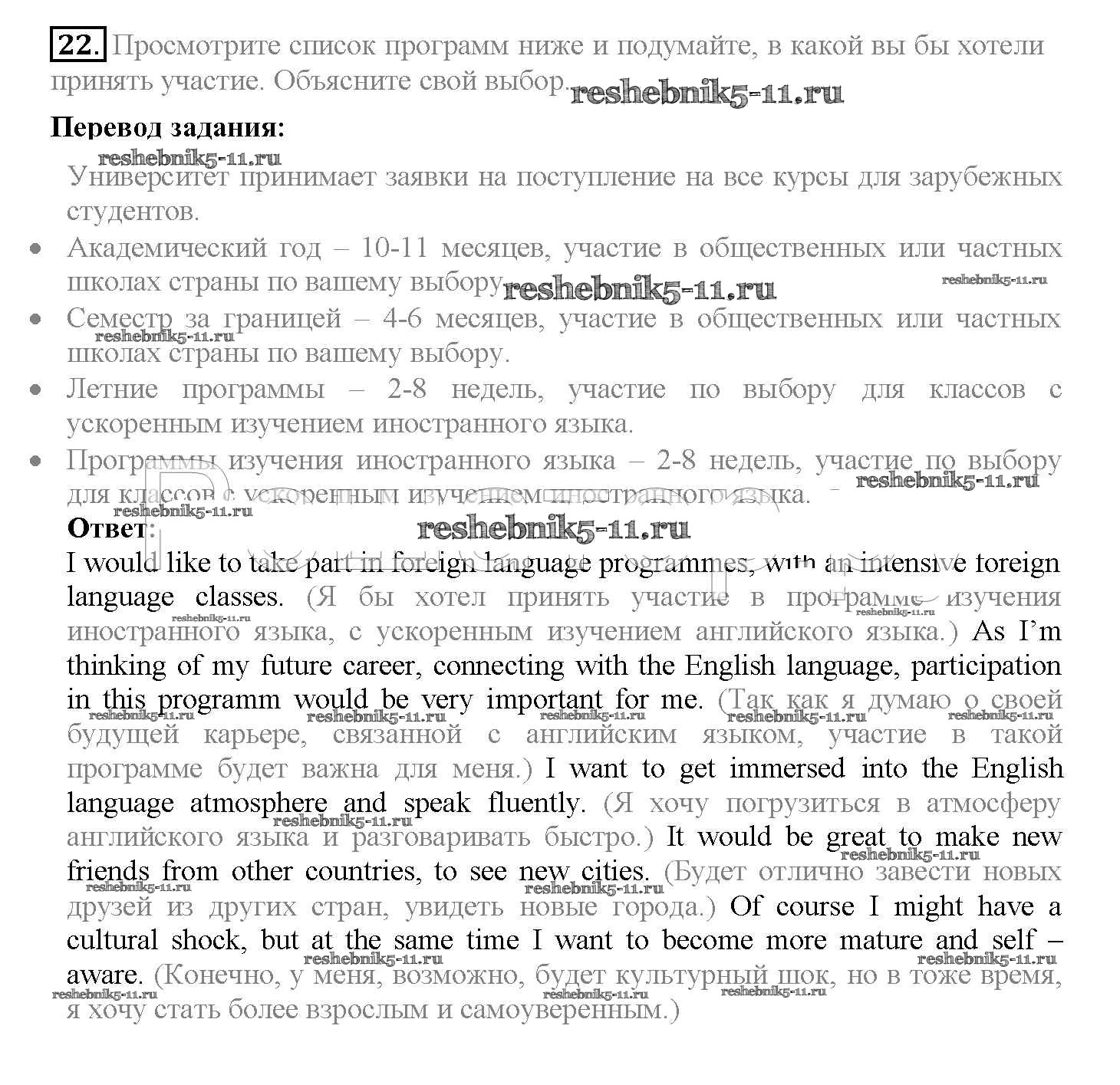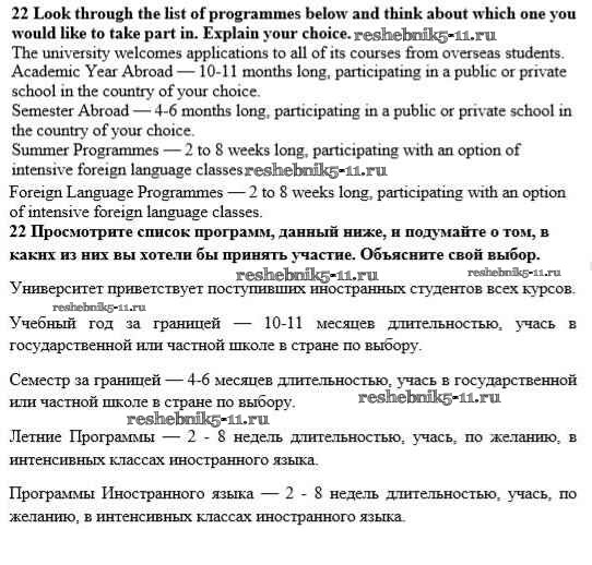 Готовая домашняя работа с ответами по Английскому языку за 10 класс Биболетова, Денисенко, Трубанева Учебник Enjoy English Аст/Астрель 2016 ФГОС - Unit 4. The world of opportunities 22