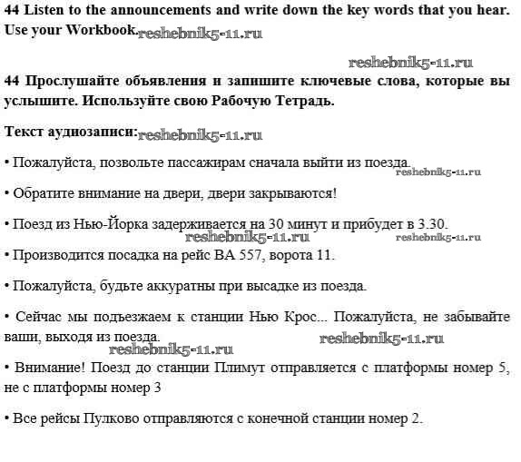 Готовая домашняя работа с ответами по Английскому языку за 10 класс Биболетова, Денисенко, Трубанева Учебник Enjoy English Аст/Астрель 2016 ФГОС - Unit 4. The world of opportunities 44