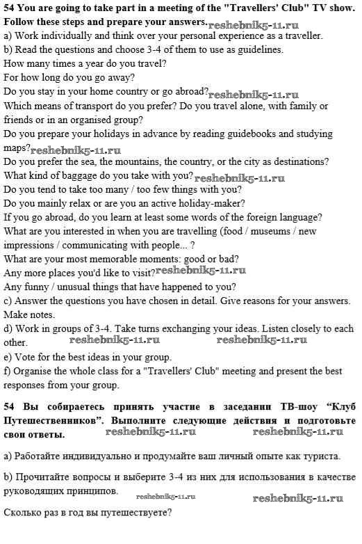 Готовая домашняя работа с ответами по Английскому языку за 10 класс Биболетова, Денисенко, Трубанева Учебник Enjoy English Аст/Астрель 2016 ФГОС - Unit 4. The world of opportunities 54