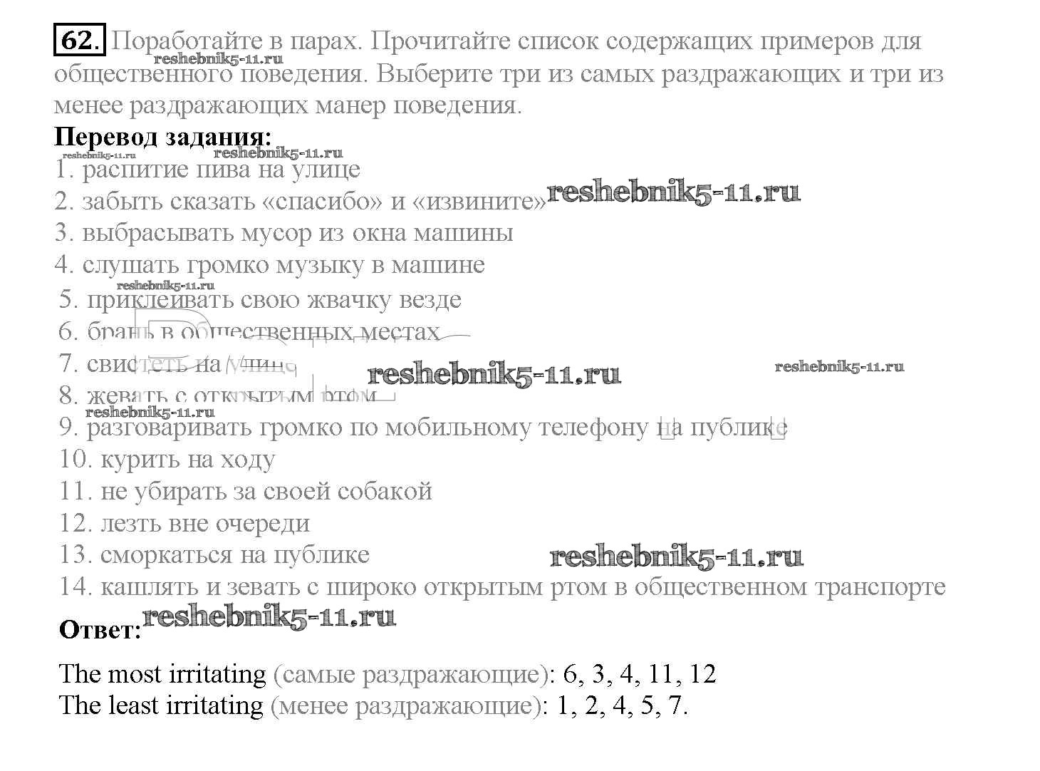 Готовая домашняя работа с ответами по Английскому языку за 10 класс Биболетова, Денисенко, Трубанева Учебник Enjoy English Аст/Астрель 2016 ФГОС - Unit 4. The world of opportunities 62