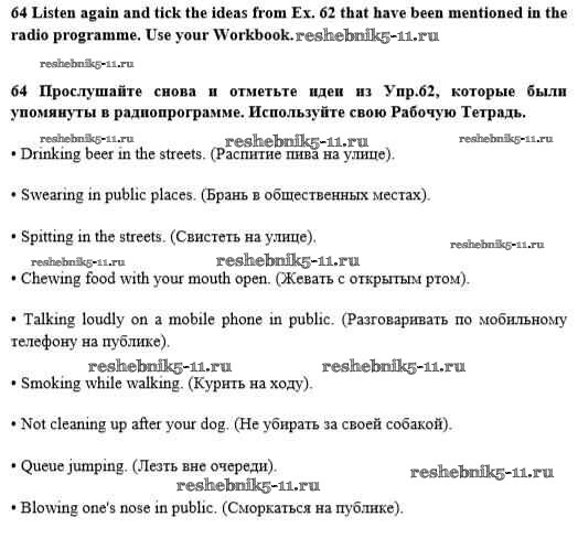 Английский язык за 10 класс Биболетова Учебник Enjoy English Аст/Астрель unit 4 64