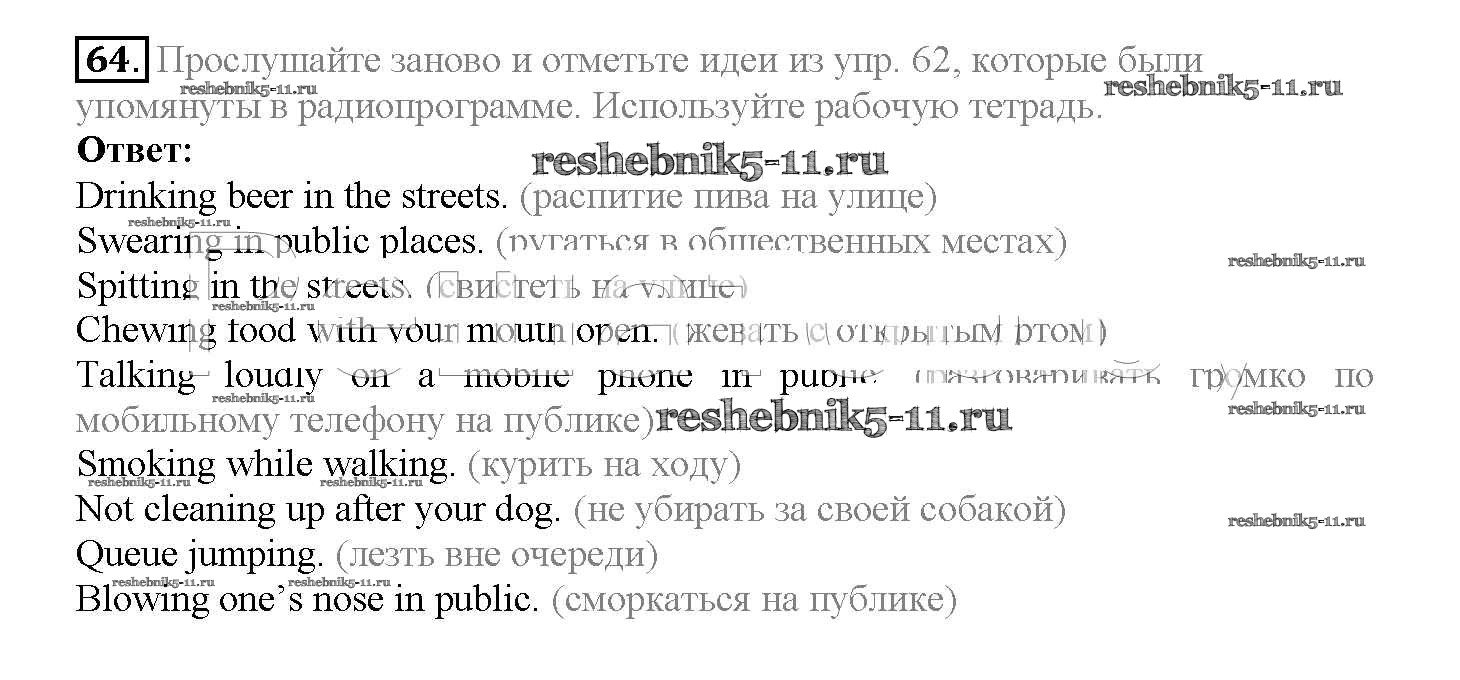 Готовая домашняя работа с ответами по Английскому языку за 10 класс Биболетова, Денисенко, Трубанева Учебник Enjoy English Аст/Астрель 2016 ФГОС - Unit 4. The world of opportunities 64
