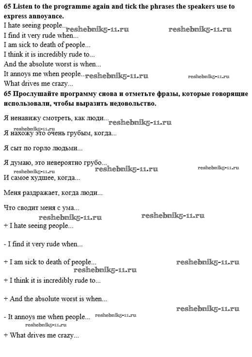 Готовая домашняя работа с ответами по Английскому языку за 10 класс Биболетова, Денисенко, Трубанева Учебник Enjoy English Аст/Астрель 2016 ФГОС - Unit 4. The world of opportunities 65