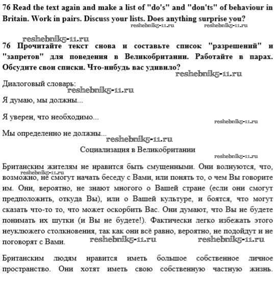 Английский язык за 10 класс Биболетова Учебник Enjoy English Аст/Астрель unit 4 76
