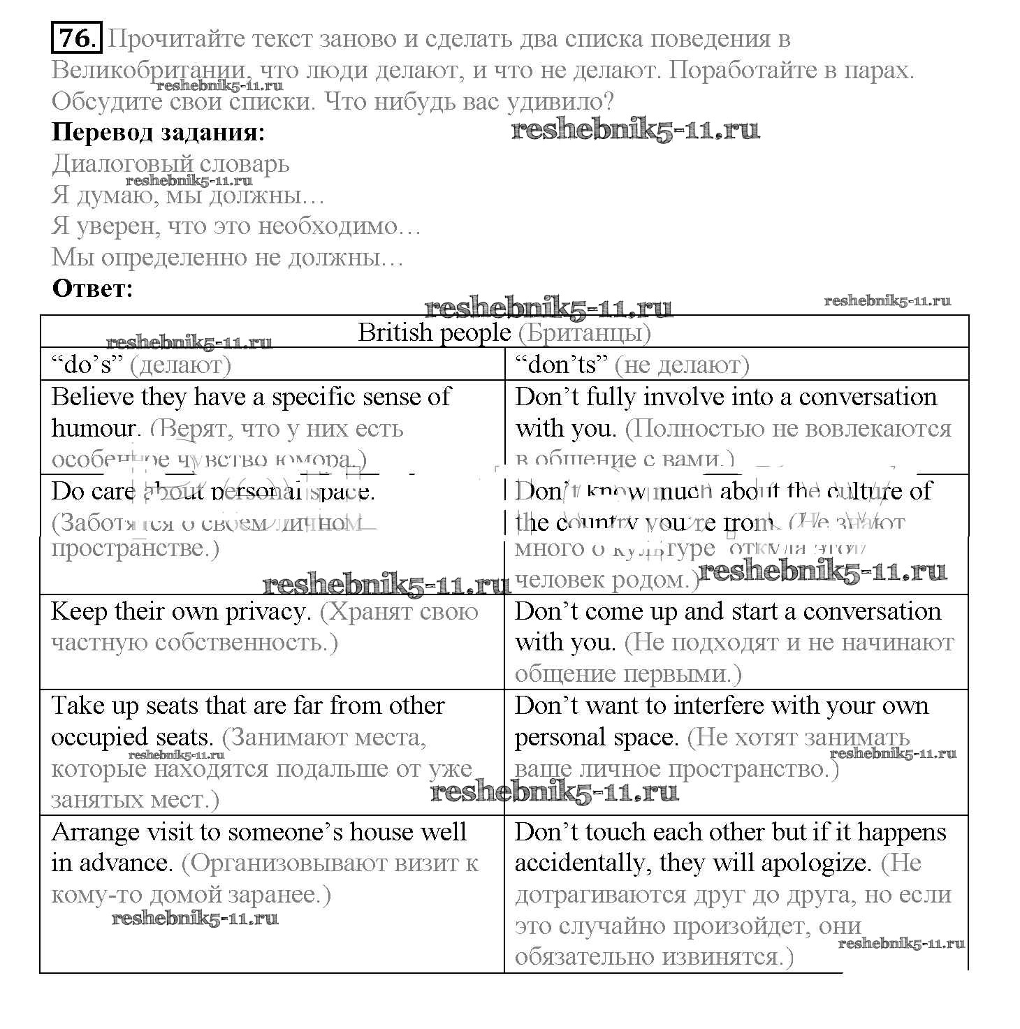 Готовая домашняя работа с ответами по Английскому языку за 10 класс Биболетова, Денисенко, Трубанева Учебник Enjoy English Аст/Астрель 2016 ФГОС - Unit 4. The world of opportunities 76