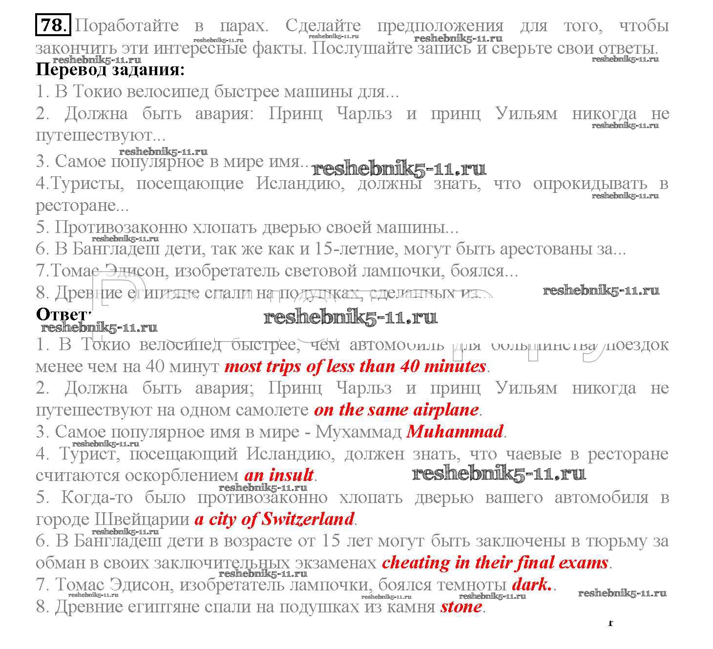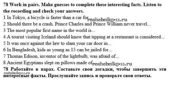 Готовая домашняя работа с ответами по Английскому языку за 10 класс Биболетова, Денисенко, Трубанева Учебник Enjoy English Аст/Астрель 2016 ФГОС - Unit 4. The world of opportunities 78