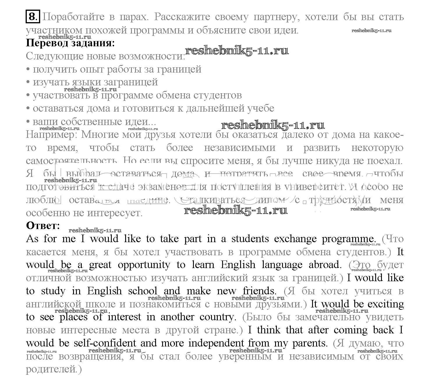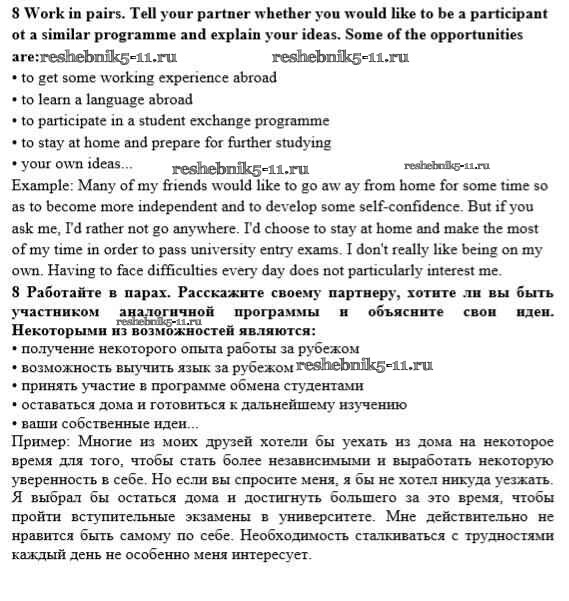 Готовая домашняя работа с ответами по Английскому языку за 10 класс Биболетова, Денисенко, Трубанева Учебник Enjoy English Аст/Астрель 2016 ФГОС - Unit 4. The world of opportunities 8