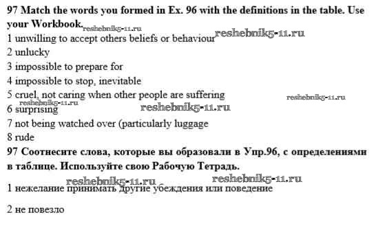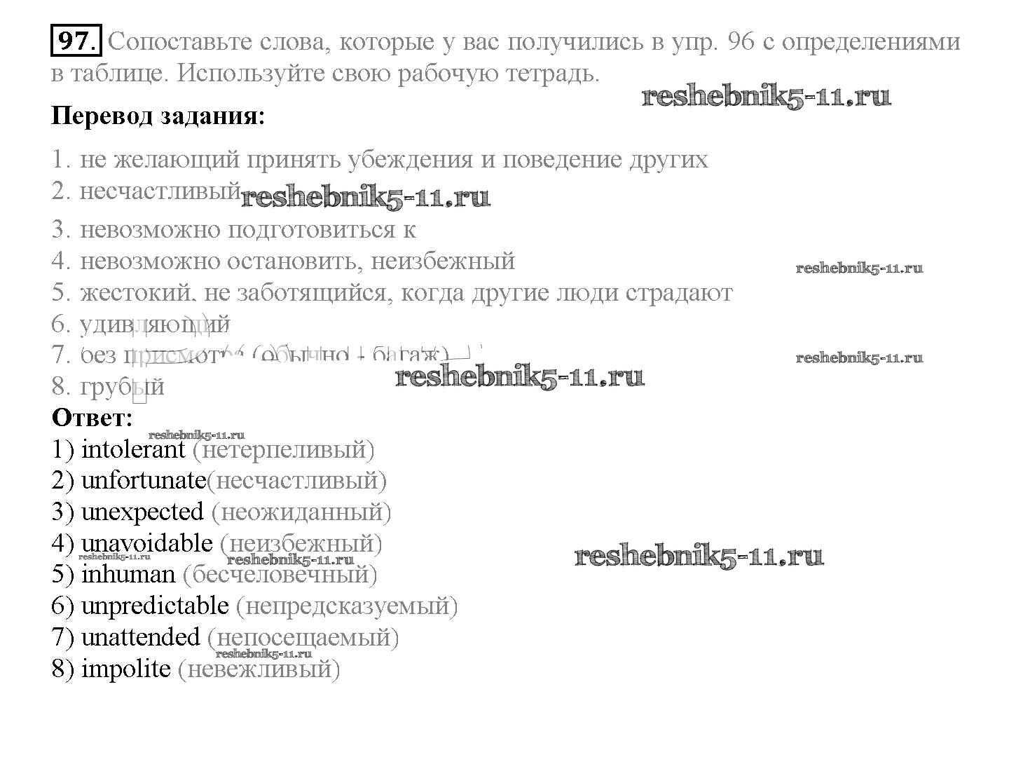 Готовая домашняя работа с ответами по Английскому языку за 10 класс Биболетова, Денисенко, Трубанева Учебник Enjoy English Аст/Астрель 2016 ФГОС - Unit 4. The world of opportunities 97