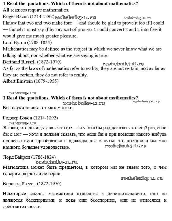 Готовая домашняя работа с ответами по Английскому языку за 10 класс Биболетова, Денисенко, Трубанева Учебник Enjoy English Аст/Астрель 2016 ФГОС - Are you good at math 1