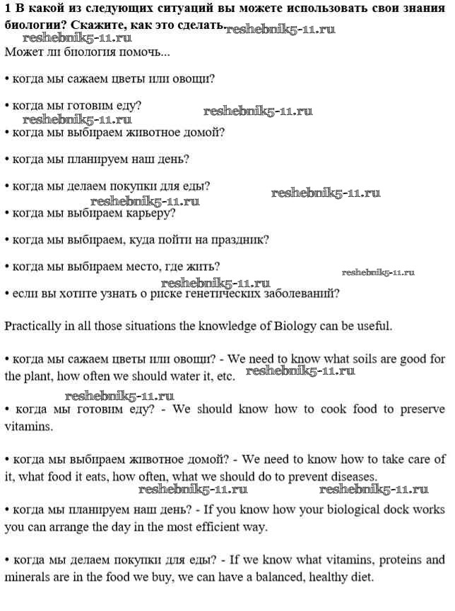 Готовая домашняя работа с ответами по Английскому языку за 10 класс Биболетова, Денисенко, Трубанева Учебник Enjoy English Аст/Астрель 2016 ФГОС - Is biology just a school subject 1