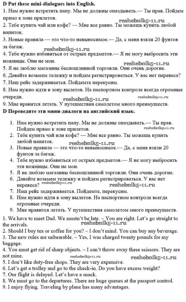 Готовая домашняя работа с ответами по Английскому языку за 10 класс Кауфман Учебник Happy English Титул 2014 ФГОС - Lessons 4,5,6. Find your way at the airport D