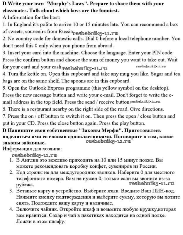 Готовая домашняя работа с ответами по Английскому языку за 10 класс Кауфман Учебник Happy English Титул 2014 ФГОС - Lessons 9,10,11. What's "Murphy's Law"? D
