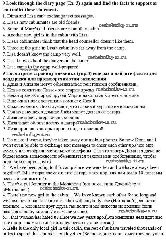 Готовая домашняя работа с ответами по Английскому языку за 10 класс Кауфман Учебник Happy English Титул 2014 ФГОС - Lessons 6, 7, 8. Lisa's cabinmates 9