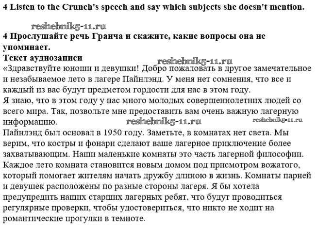 Готовая домашняя работа с ответами по Английскому языку за 10 класс Кауфман Учебник Happy English Титул 2014 ФГОС - Lessons 11, 12. Camp Pineland — traditions and rules 4