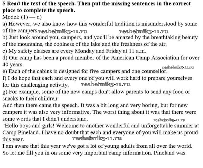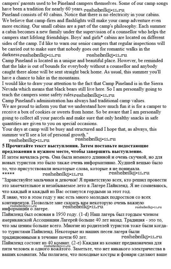 Готовая домашняя работа с ответами по Английскому языку за 10 класс Кауфман Учебник Happy English Титул 2014 ФГОС - Lessons 11, 12. Camp Pineland — traditions and rules 5