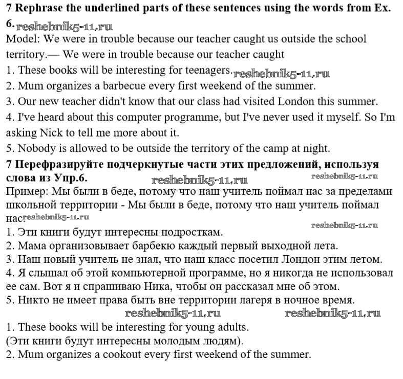Готовая домашняя работа с ответами по Английскому языку за 10 класс Кауфман Учебник Happy English Титул 2014 ФГОС - Lessons 11, 12. Camp Pineland — traditions and rules 7