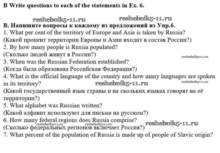 Готовая домашняя работа с ответами по Английскому языку за 10 класс Кауфман Учебник Happy English Титул 2014 ФГОС - Lessons 1, 2. What would you tell about Russia? B
