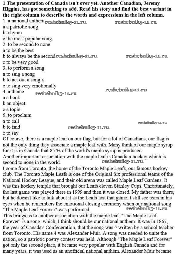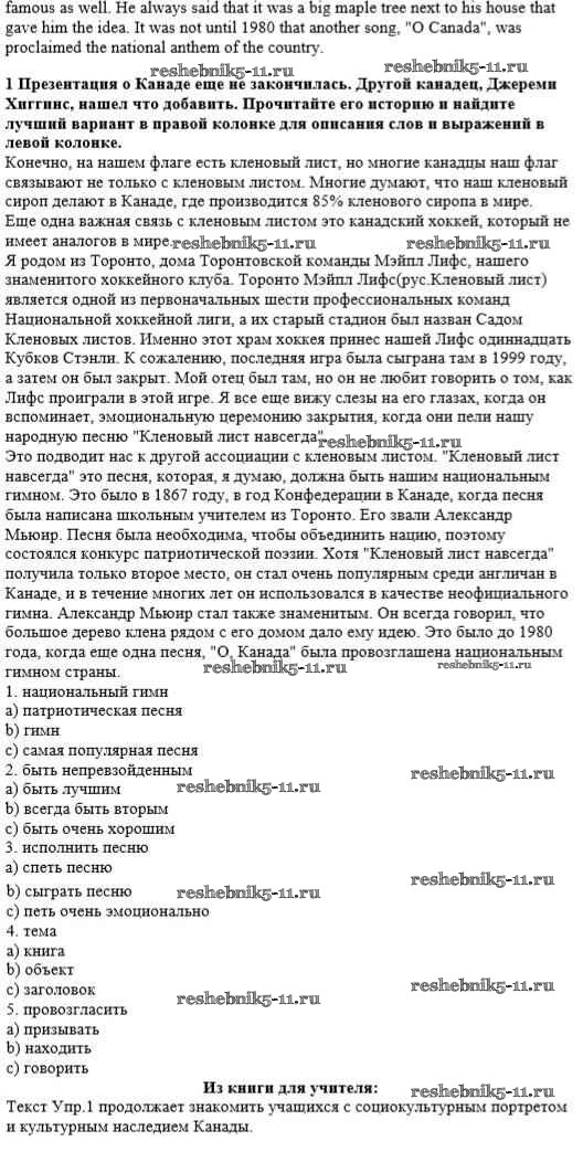 Готовая домашняя работа с ответами по Английскому языку за 10 класс Кауфман Учебник Happy English Титул 2014 ФГОС - Lessons 5, 6, 7. "The Maple Leaf Forever" 1
