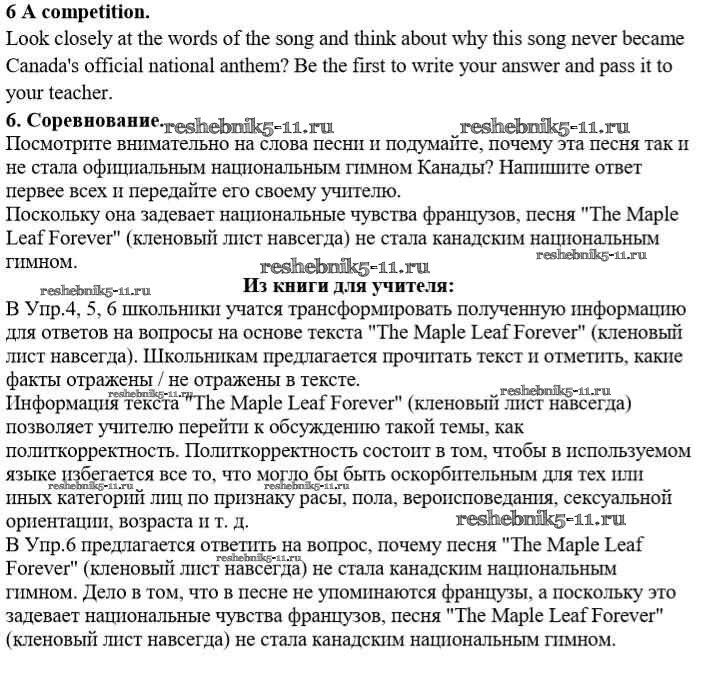 Готовая домашняя работа с ответами по Английскому языку за 10 класс Кауфман Учебник Happy English Титул 2014 ФГОС - Lessons 5, 6, 7. "The Maple Leaf Forever" 6