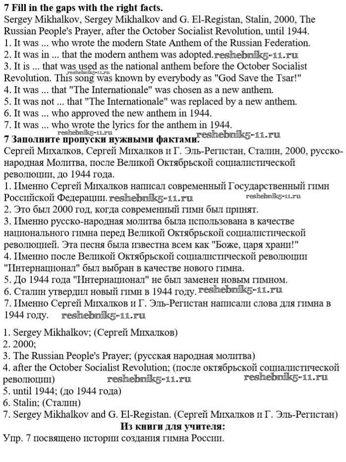 Готовая домашняя работа с ответами по Английскому языку за 10 класс Кауфман Учебник Happy English Титул 2014 ФГОС - Lessons 5, 6, 7. "The Maple Leaf Forever" 7