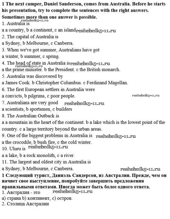 Готовая домашняя работа с ответами по Английскому языку за 10 класс Кауфман Учебник Happy English Титул 2014 ФГОС - Lessons 8, 9. Australia is an island, isn't it? 1