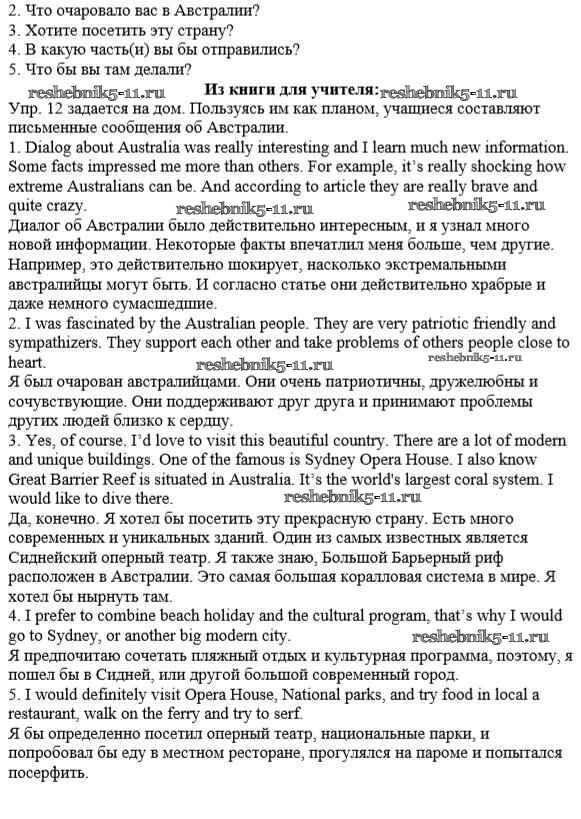 Готовая домашняя работа с ответами по Английскому языку за 10 класс Кауфман Учебник Happy English Титул 2014 ФГОС - Lessons 8, 9. Australia is an island, isn't it? 12