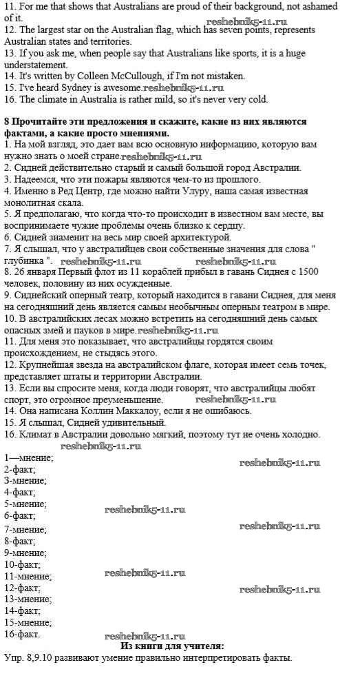 Готовая домашняя работа с ответами по Английскому языку за 10 класс Кауфман Учебник Happy English Титул 2014 ФГОС - Lessons 8, 9. Australia is an island, isn't it? 8