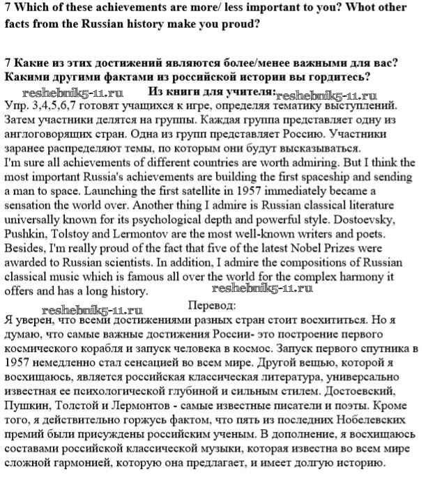 Готовая домашняя работа с ответами по Английскому языку за 10 класс Кауфман Учебник Happy English Титул 2014 ФГОС - Lessons 10, 11. What achievements of your country are you proud of? 7