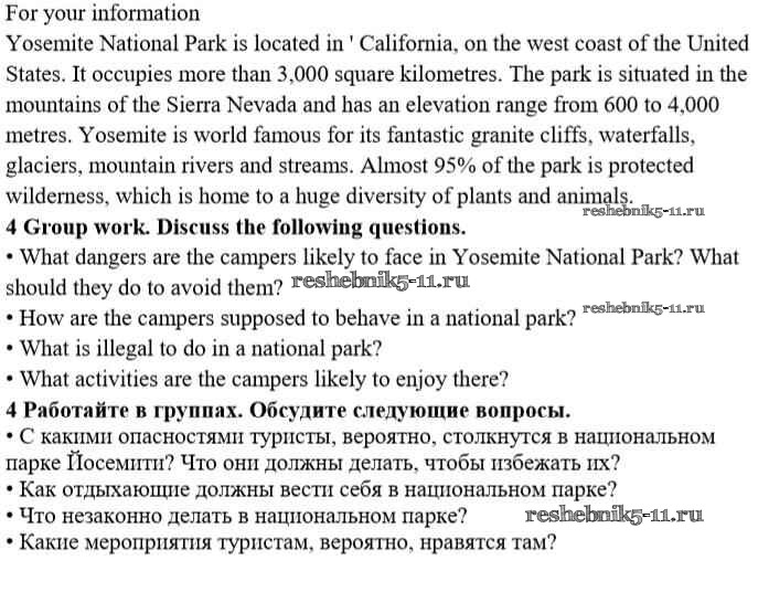Готовая домашняя работа с ответами по Английскому языку за 10 класс Кауфман Учебник Happy English Титул 2014 ФГОС - Lessons 4, 5. Yosemite National Park 4