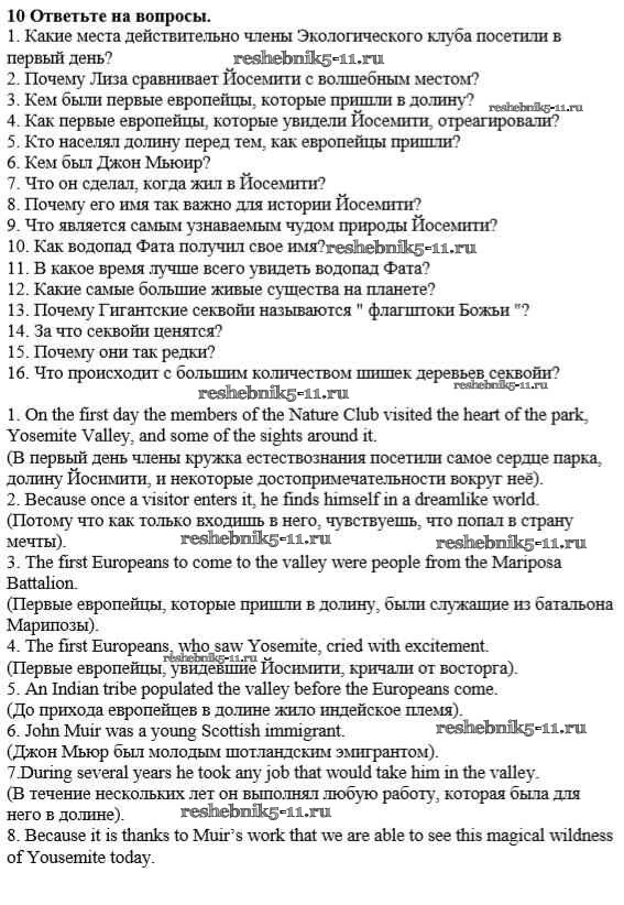 Готовая домашняя работа с ответами по Английскому языку за 10 класс Кауфман Учебник Happy English Титул 2014 ФГОС - Lessons 6, 7, 8. What did Lisa see in Yosemite National Park? 10