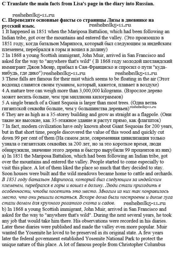 Готовая домашняя работа с ответами по Английскому языку за 10 класс Кауфман Учебник Happy English Титул 2014 ФГОС - Lessons 6, 7, 8. What did Lisa see in Yosemite National Park? C
