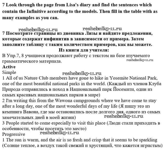 Готовая домашняя работа с ответами по Английскому языку за 10 класс Кауфман Учебник Happy English Титул 2014 ФГОС - Lessons 6, 7, 8. What did Lisa see in Yosemite National Park? 7